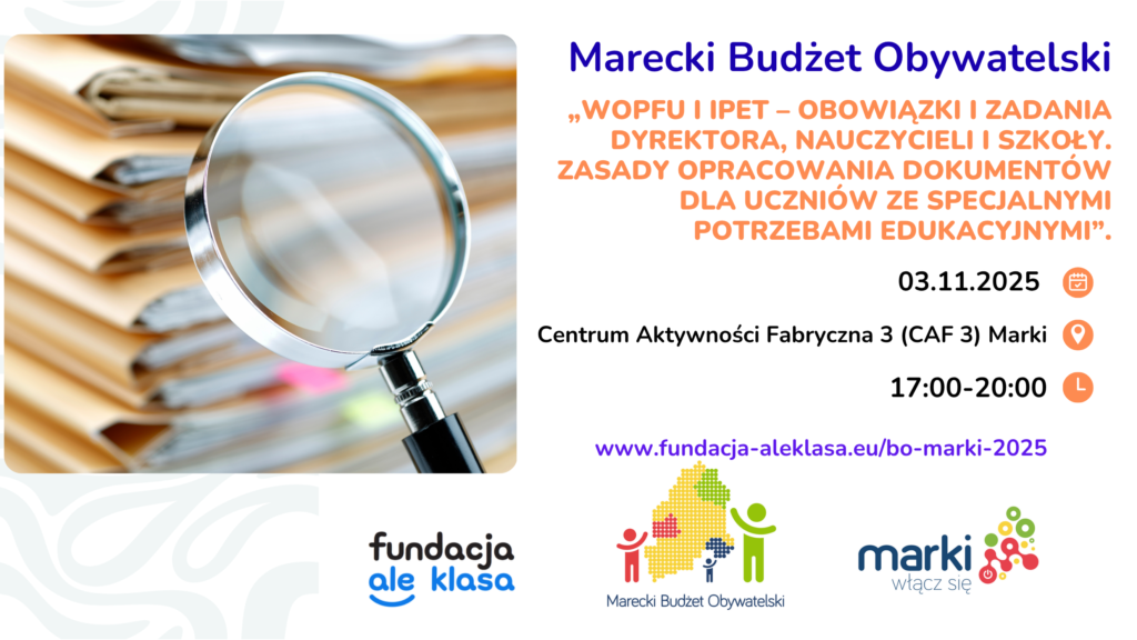 - „WOPFU i IPET – obowiązki i zadania dyrektora, nauczycieli, szkoły, zasady opracowania” – 03.11.2025, 17:00