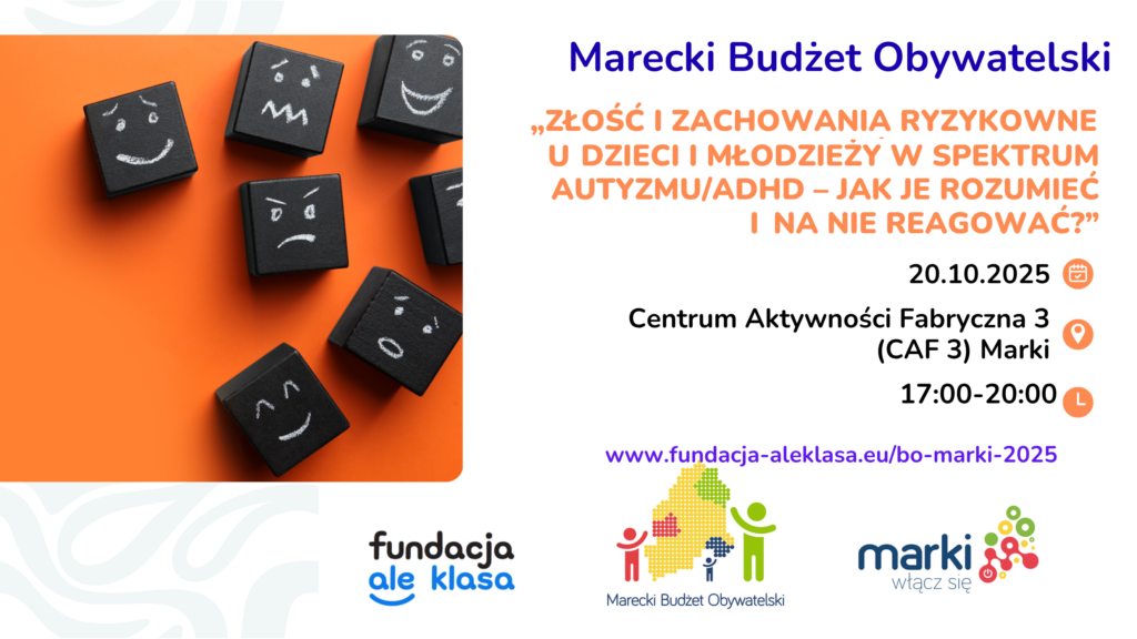 - „Złość i zachowania ryzykowne u dzieci i młodzieży w spektrum autyzmu/ADHD”. – 20.10.2025, 17:00